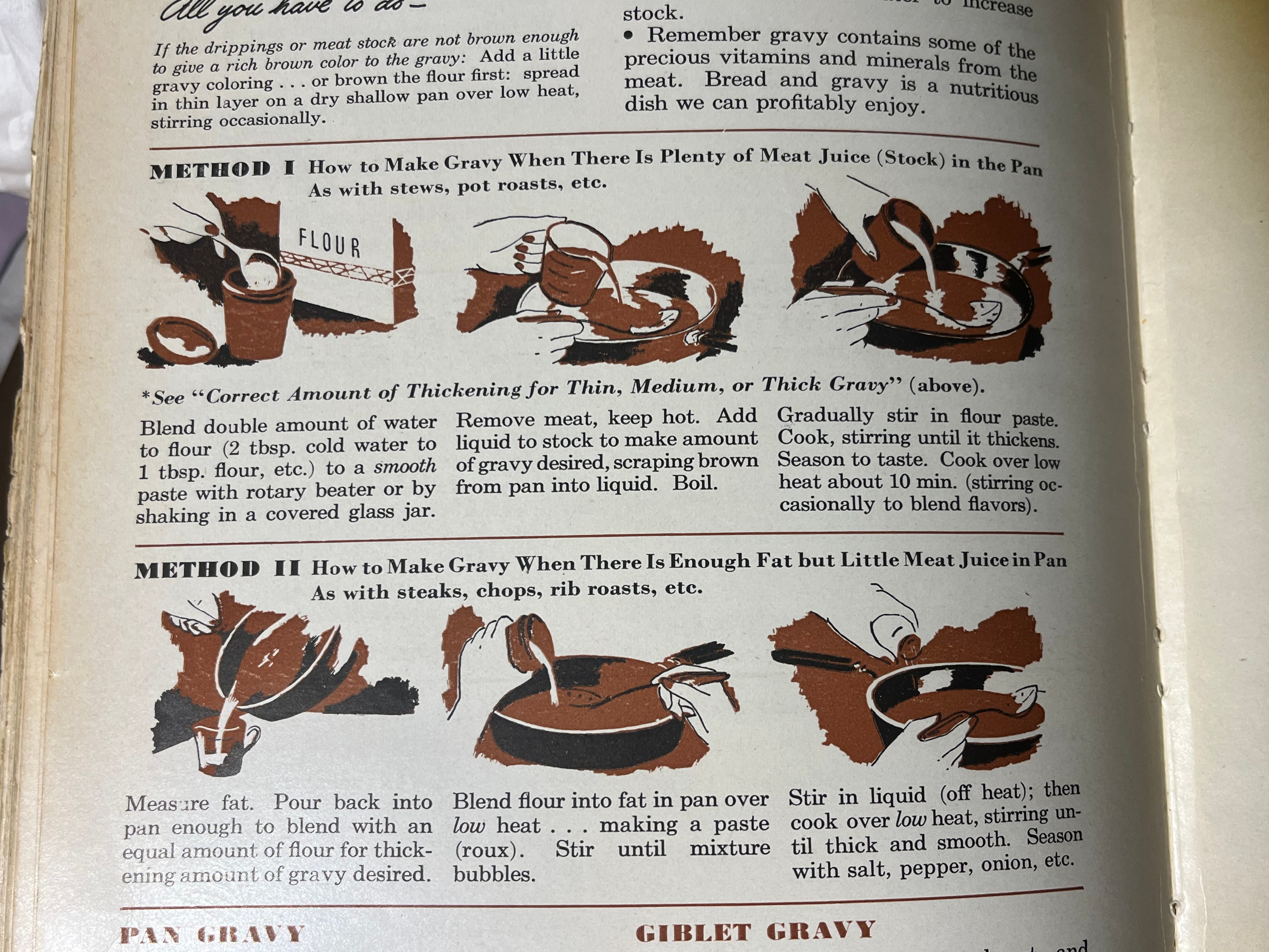 I love those old cook books and their sage advice . My own mother was a terrible cook , white lumps in the gravy , gross “ Swiss steak “ . Anything grilled was a charred lump of who knew what . Anything in a can , remember those disgusting peas , or a box made its way to our table She embraced TV dinners with great enthusiasm , at last convinced there was a God . We really looked forward to that blueberry buckle . Fortunately , we did take a lot of vitamins and had no food allergies.