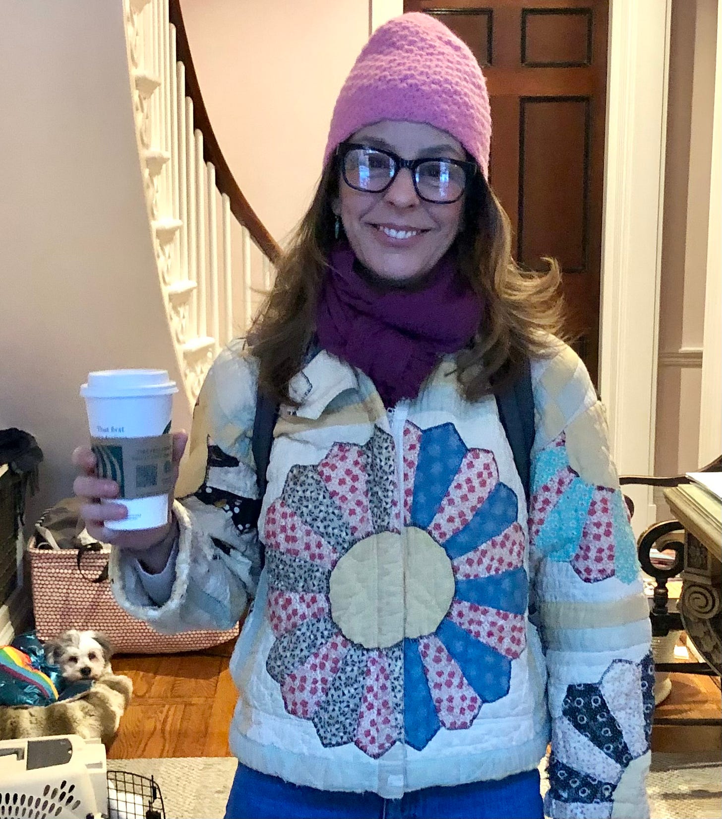 A few weeks ago, I was sitting on a plane to Phoenix in a 1980s quilted jacket that looks like a bed cover that was my mom’s. My daughter has taken to wearing it. I needed a coat to go from cold to warm and as I ferreted around in the girls’ closet, there it was.